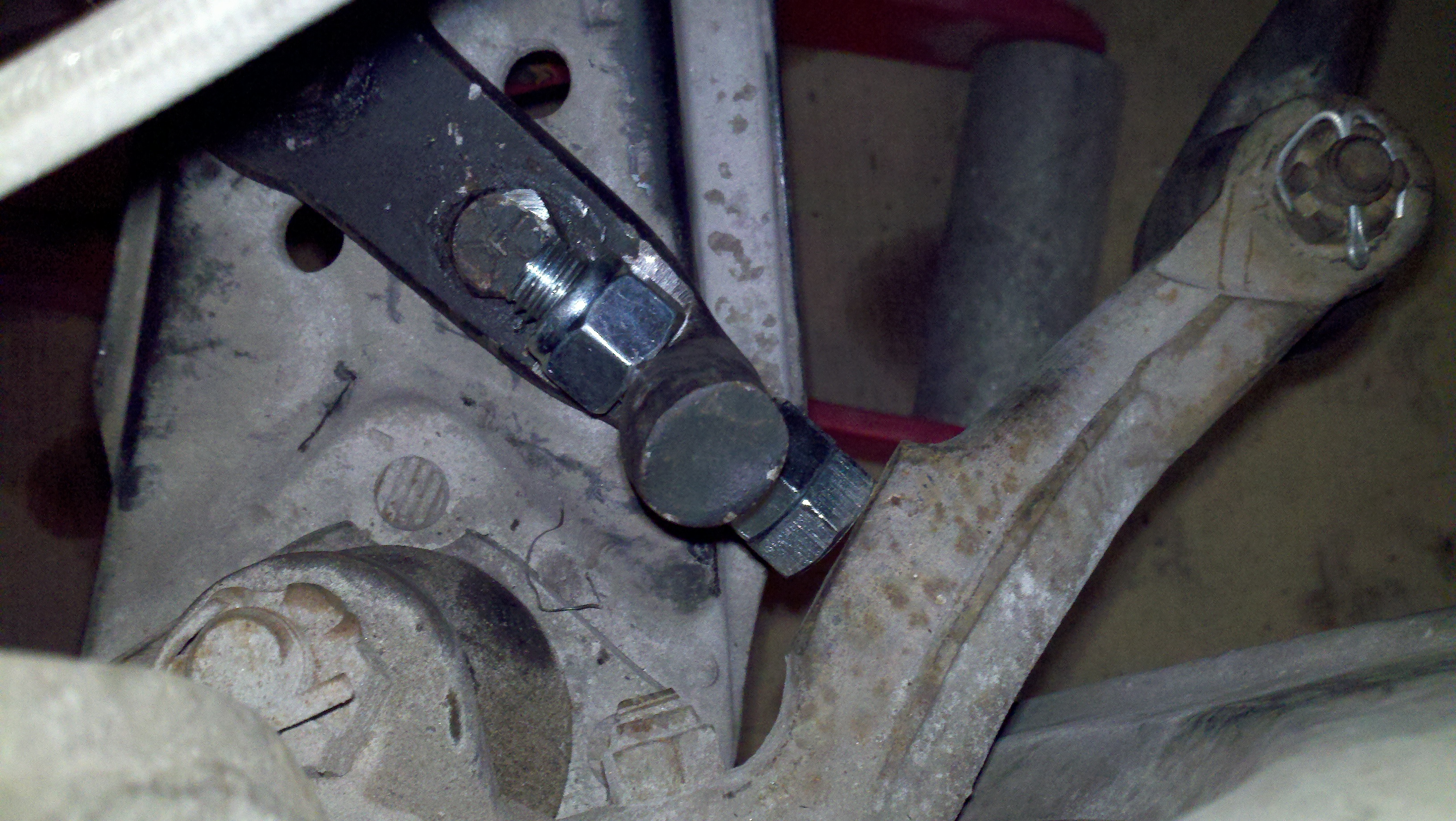 After this, used a grinder to clearance the backside and flatted it out so a nut could sit flush with the strut arm. Bolted the strut arm back in and slipped in a bolt with 2 nuts and adjusted to take up the slack. Complete!