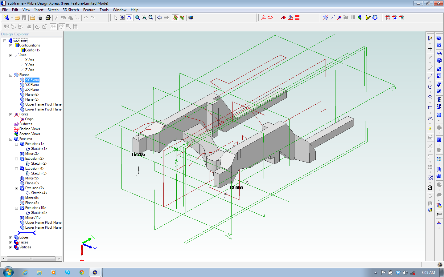 I turned elsewhere for a 3D modeling solution and settled on Alibre Design’s software (more on that in a bit). First up was modeling the subframe.