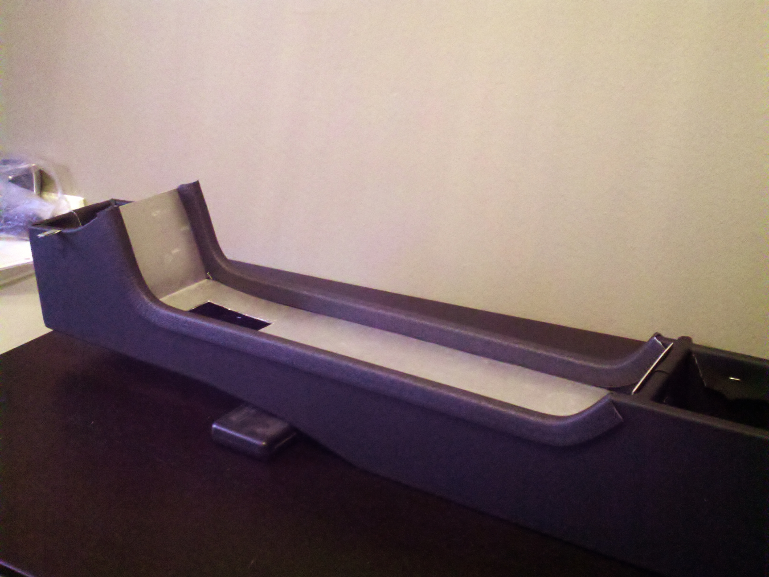 Been slowly working on the console when I have some free time. I’ve semi-solved the edging issue by using some Self-Gripping Vinyl Edging from McMaster-Carr (part #24175K31 if you were interested). It conformed pretty nicely to the edge and covered up the sections that I couldn’t get the leather to make the corners.