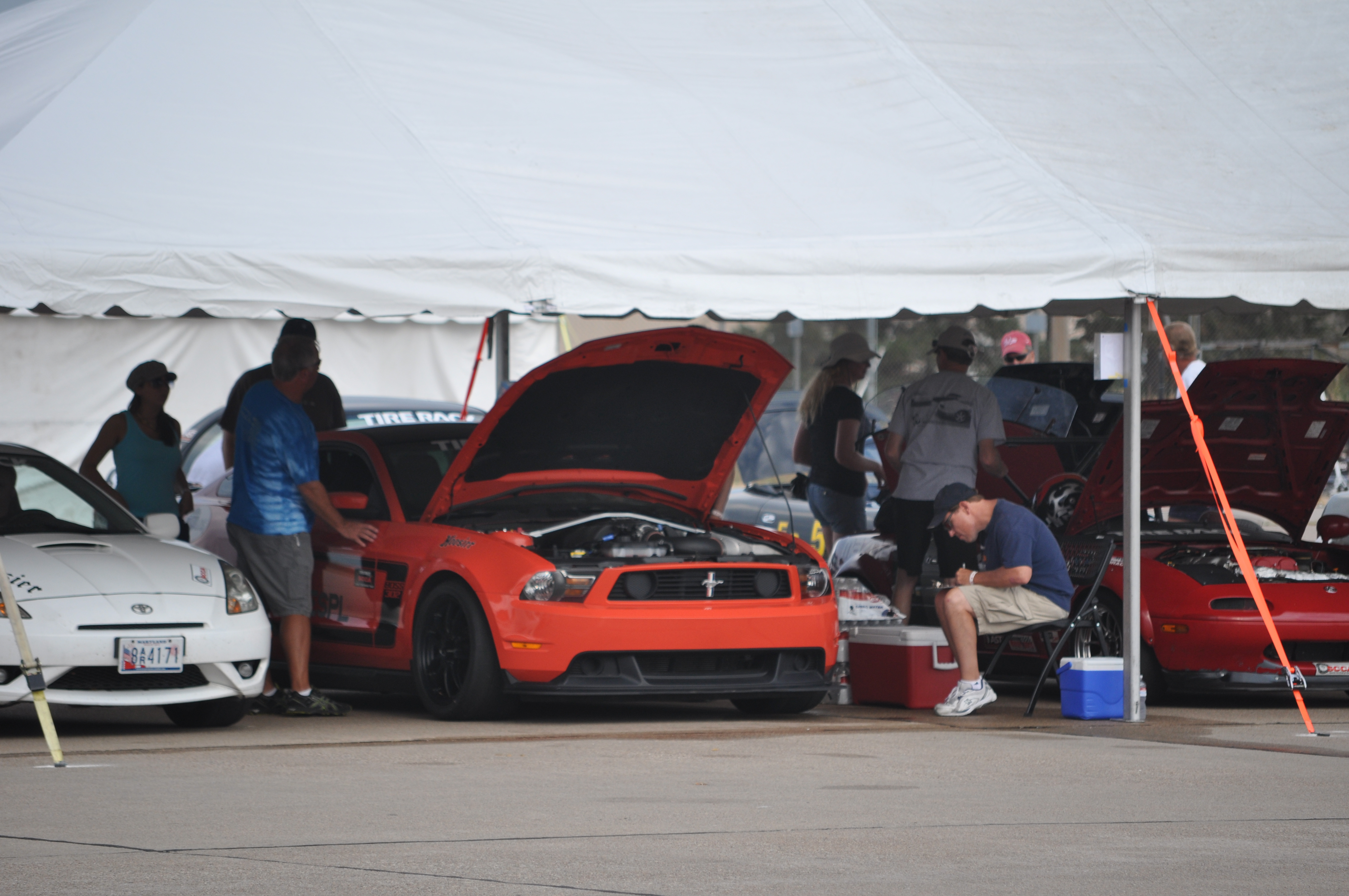 We rolled the Camaros out of the trailer so we could run through tech.