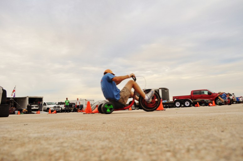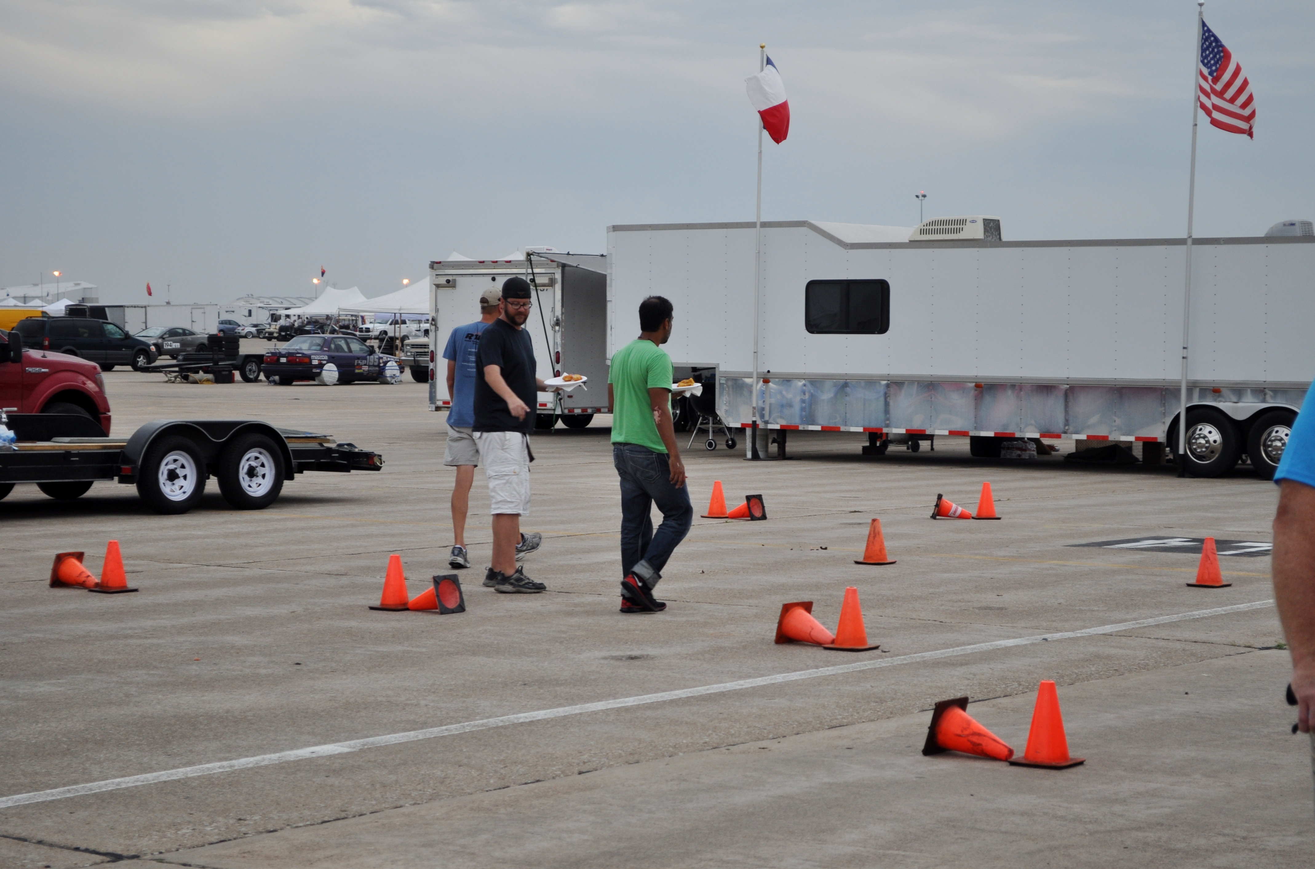 Most nights see the Big Wheel Pro Solo going down. Here Zack, Vivek, and Dr. Strelnieks debating the cone placement. This is serious business (accompanied by serious drinking!).