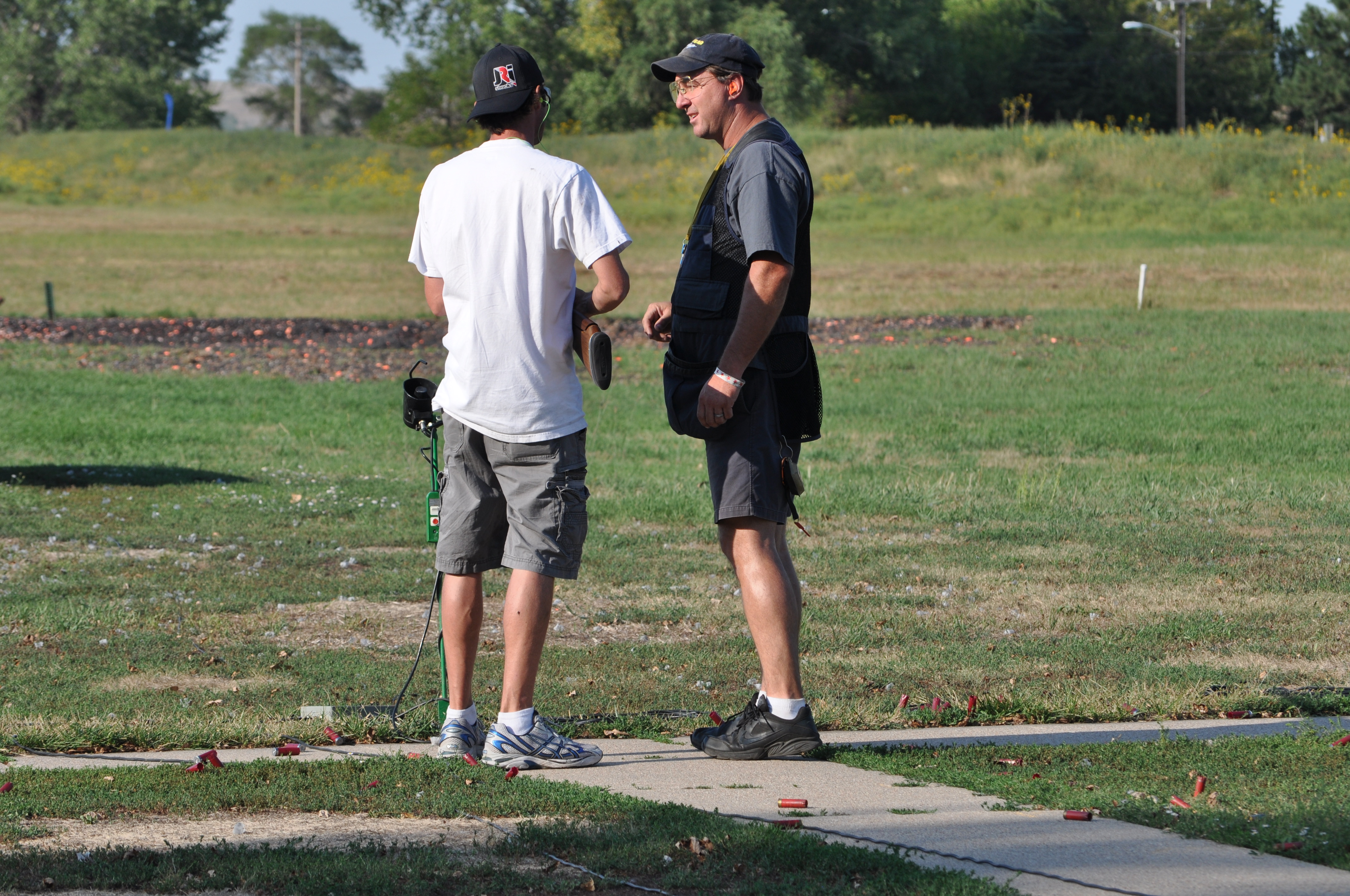 Todd schooling Mikey on the finer points of trap shooting.