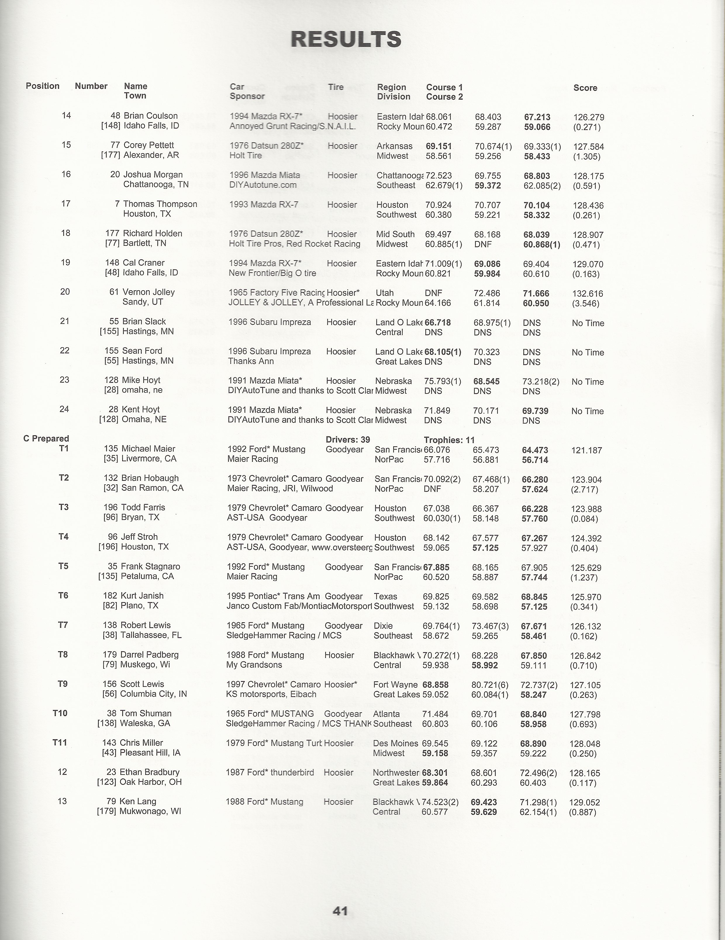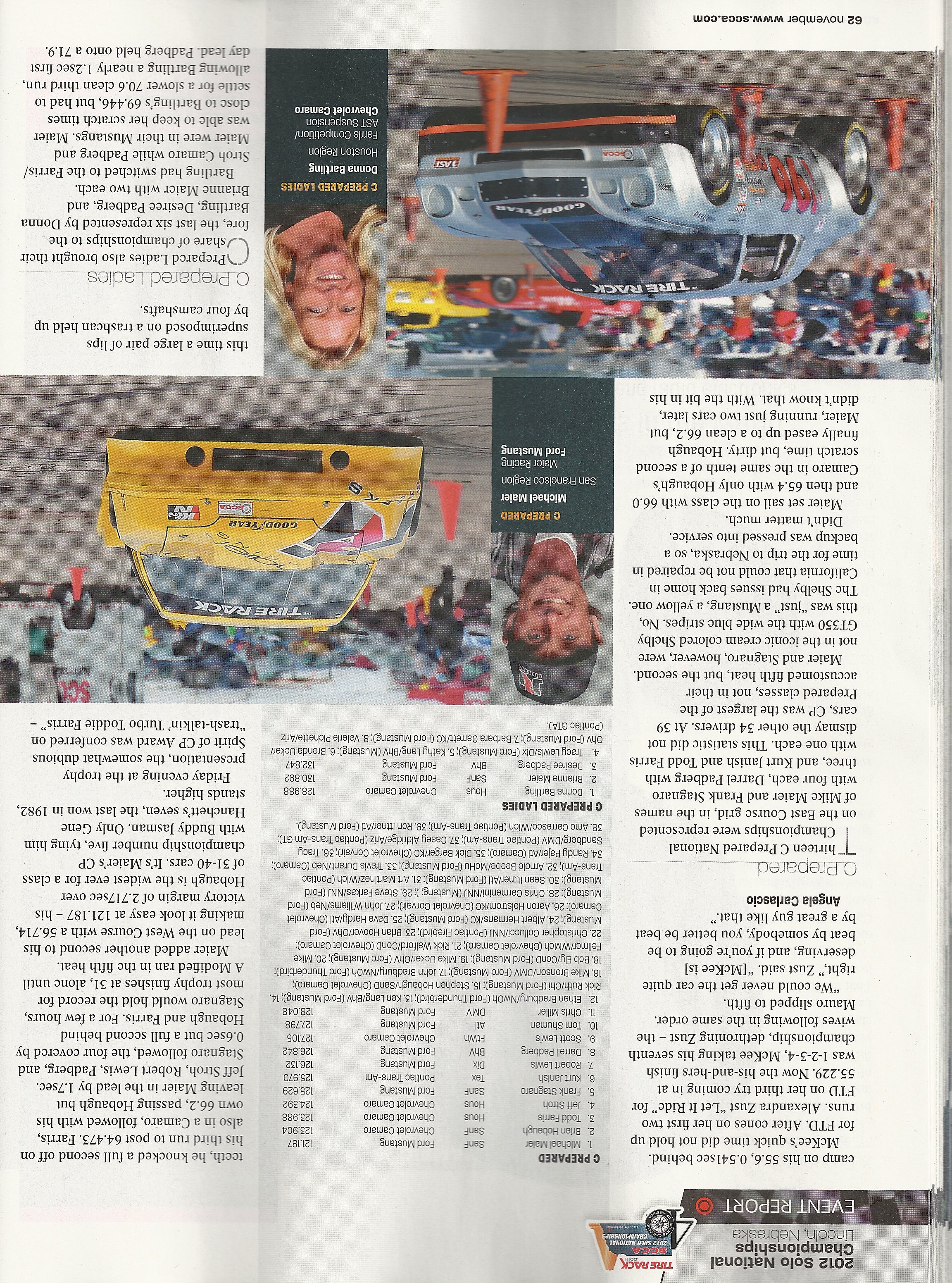 With a 3-4 finish, you can generally expect a mention, but certainly not glowing press from the Sports Car writers! As usual they didn’t provide a whole lot of commentary on Day 2 which saw much closer racing than written (look at the results – Janish and I tied for 2nd fastest on the day, ~0.5s back of Maier). Nonetheless, congratulations are due again to Mike Maier for the win!