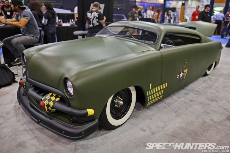 This ’51 Ford, spotted at Speedhunters is another favorite with a WWII theme. I’ve wanted to build something similar with a bit of a rat-rod slant out of a ’67 Mustang with a Jaguar V-12… After all, WWII P-51 Mustangs came with British V-12s so wouldn’t that be a fitting homage? I love the interior with the plane seats and gauges, exactly how I was planning mine! Perhaps one of these days…