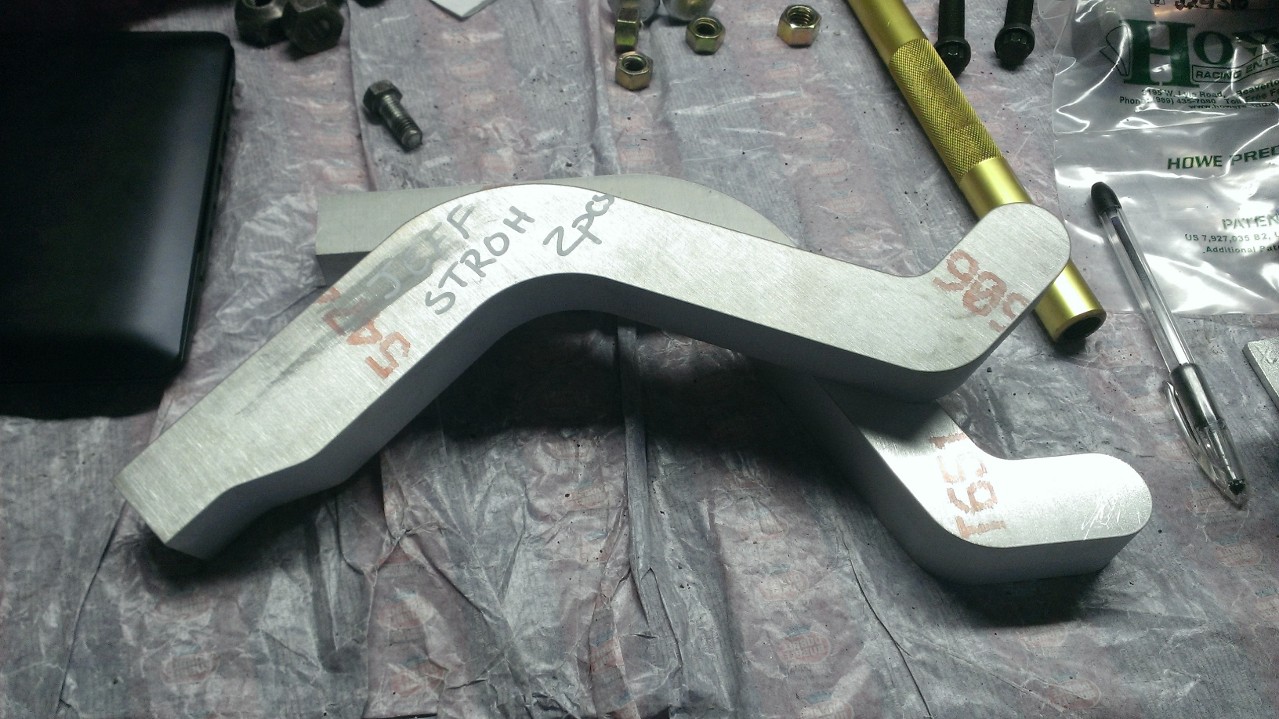 My 3D modeling paid off in another way, saving me some money, but not before my ignorance cost me quite a bit! If you’ll recall from a few posts ago I had planned on getting new steering arms made to move the pickup point to the inboard side of the wheel. Though my 3D model showed I was getting “anti-Ackerman”, which isn’t desirable, I told myself I just had to find the right rack position and it’d work out. Turns out I was very wrong… The pickup point for the tierod on the spindle MUST be at least inline with the lower balljoint fore/aft otherwise it won’t work! So $200 down the drain, but now I have some really cool waterjet cut paperweights…
