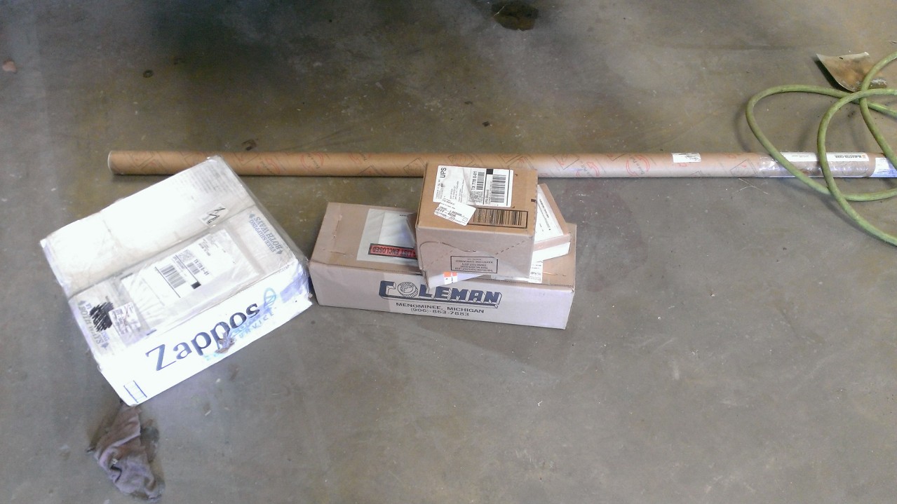 4130 Chromoloy tubing, new Howe balljoints to replace my Coleman monoballs (to get a little more droop travel), parts to fab our own lower control arms, and our rebuilt steering rack!