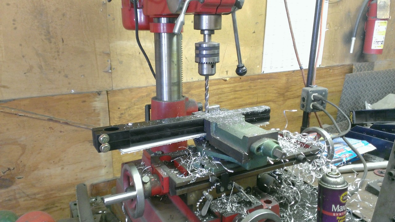 New arms had to be drilled, which we did on a mill to keep the holes in a straight line. We really need to get some more tooling for this machine since right now all Todd has for it are drill bits!