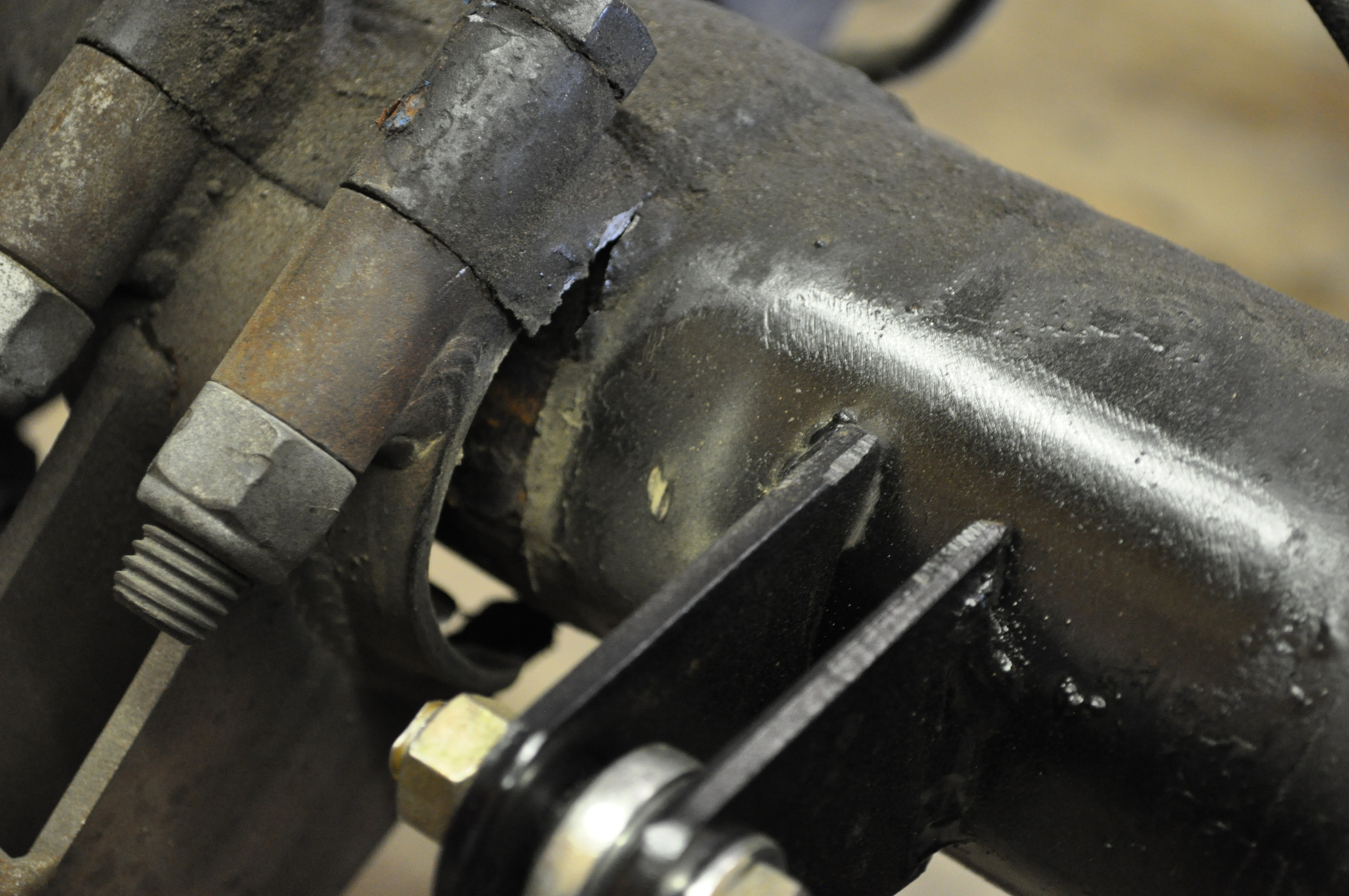 One of the trailing arm brackets had broken as well, which is part of the reason the axle shifted in the car.