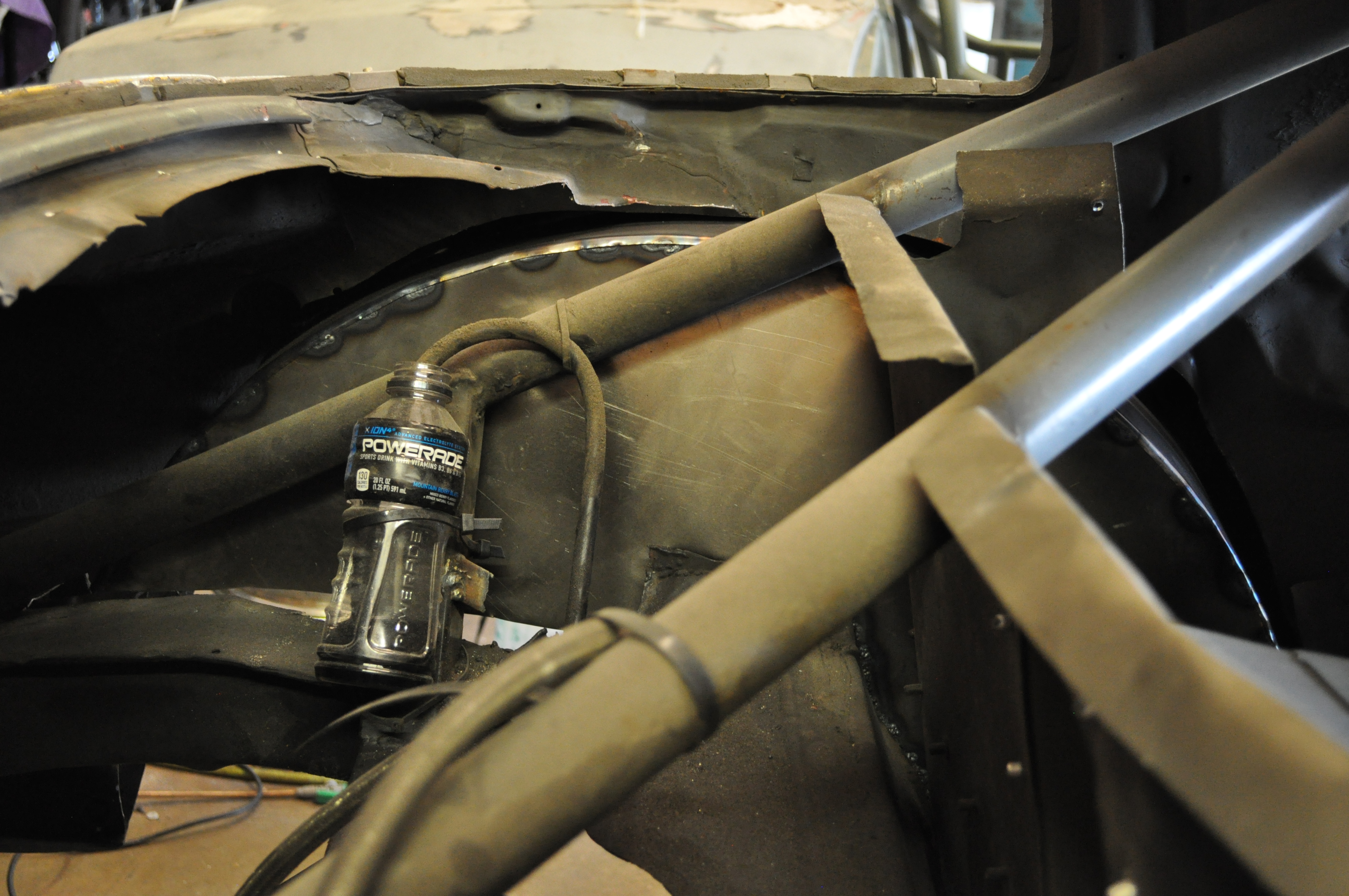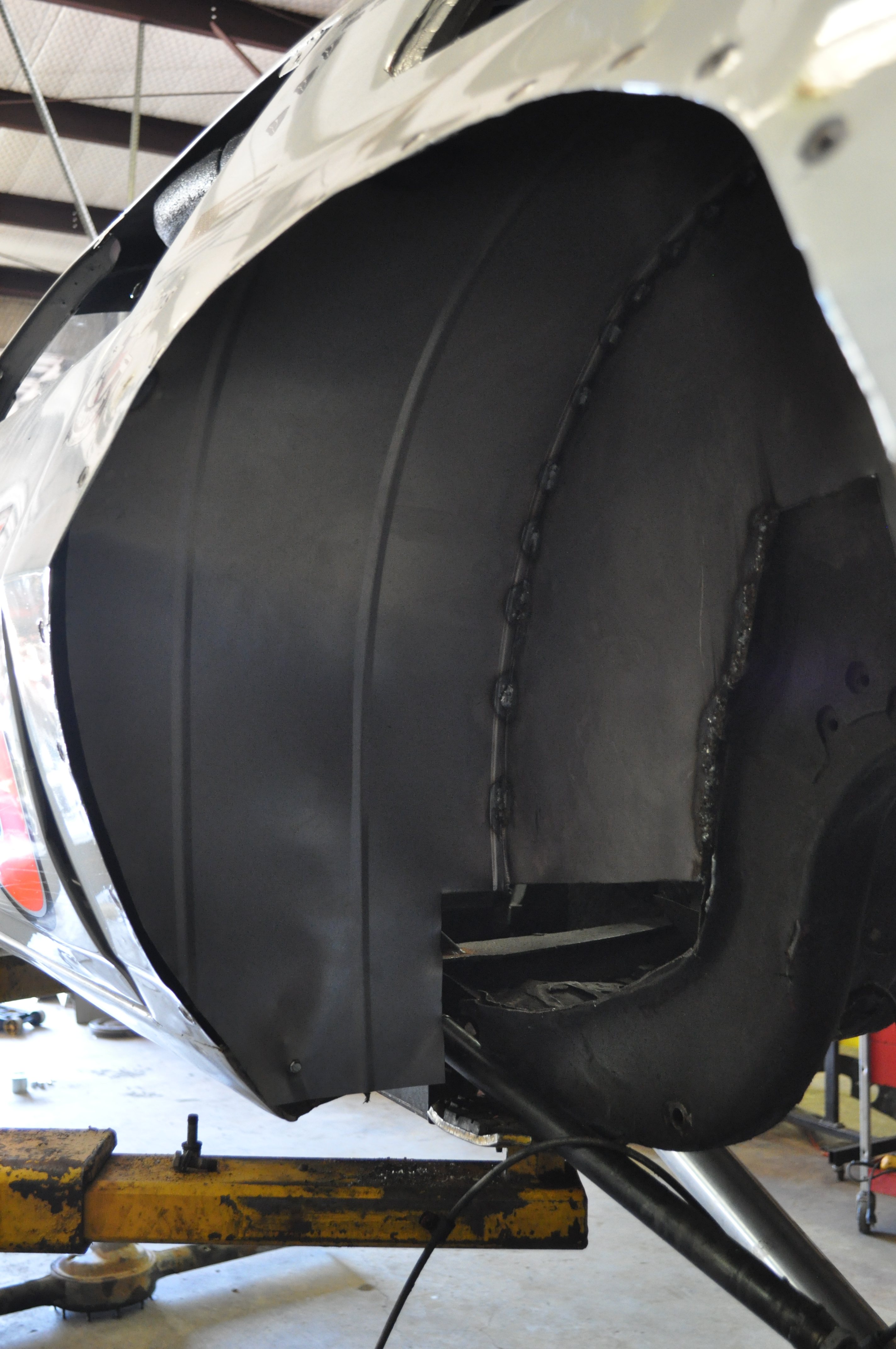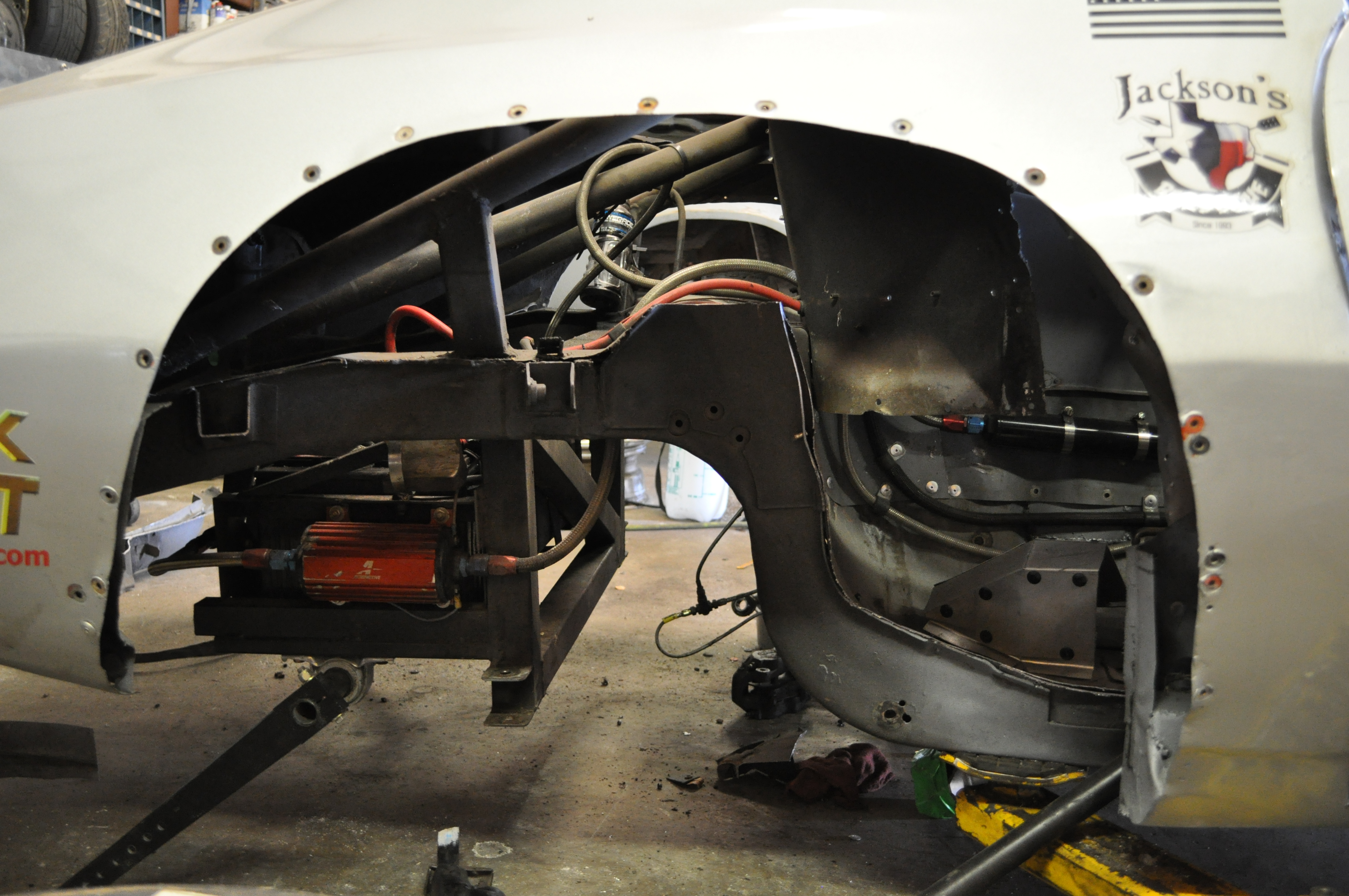In order to accommodate the new radials which are taller than the bias-plys, we decided to finally put in proper tubs in the car. This starts with removing the old wheel well, but leaving the frame rails since that isn’t allowed by the CP ruleset.