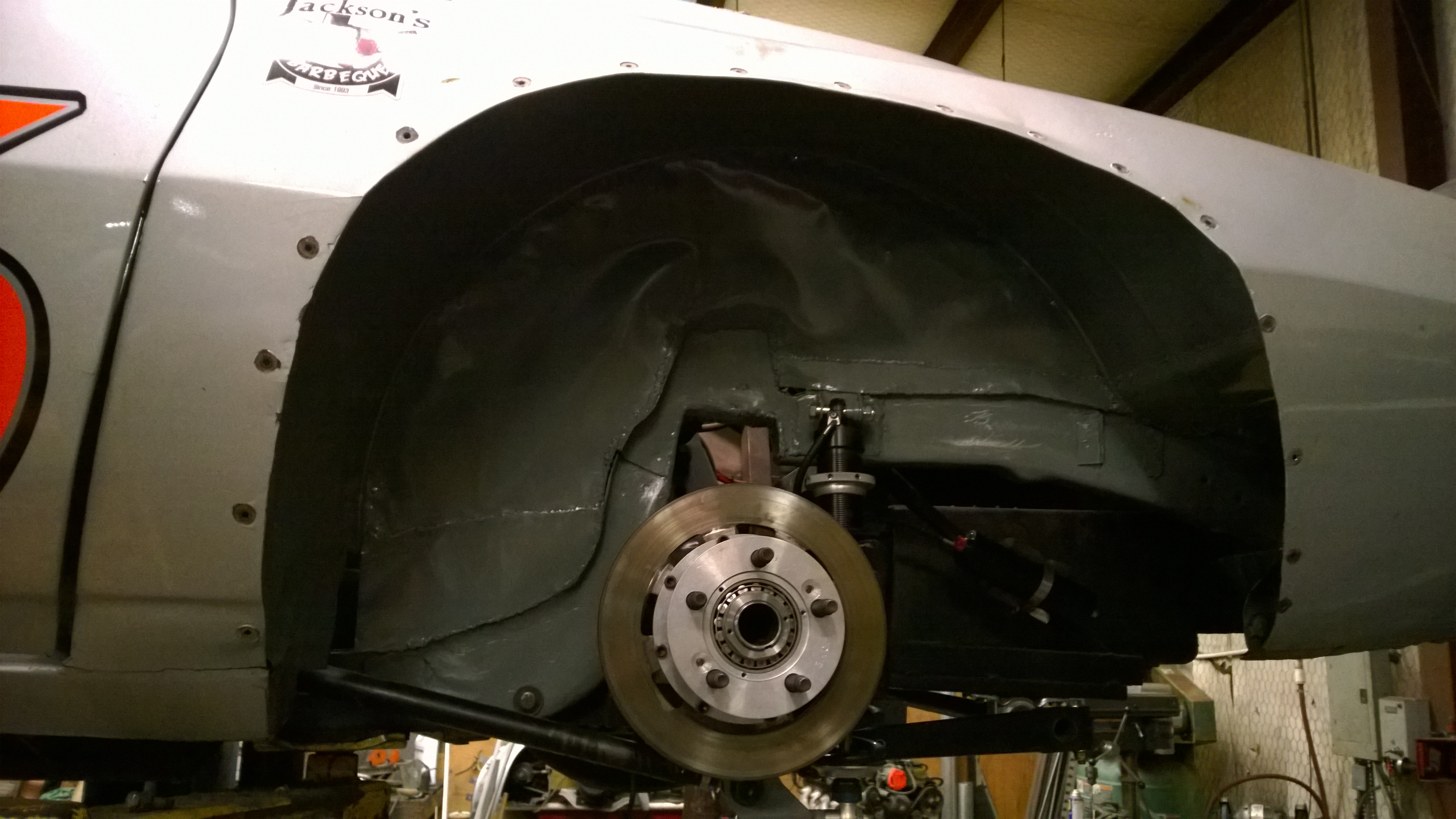 The brackets worked out really well and put the calipers on the front side of the axle which we needed to clear the coilovers.