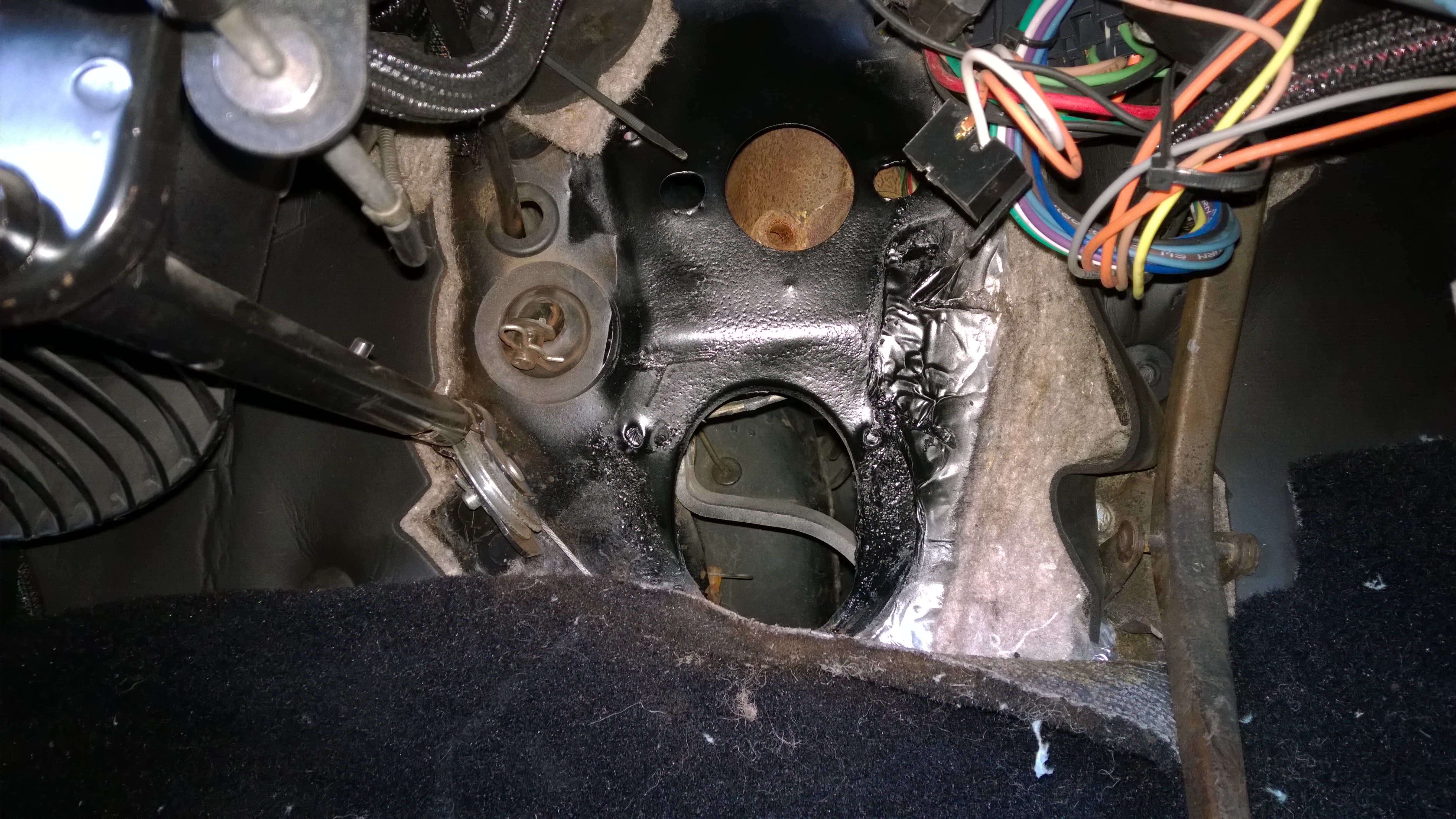 Here’s a shot from the firewall side. As you can see, the gaskets fit “ok”, but aren’t sealed up. This was the best possible fit. I ended up filling the gap with RTV and effectively gluing the gasket together. I’m worried that the same failure is going to happen down the road that happened before, but for the moment it was the only option. Everything else went together smoothly and the clutch worked great! I have to say I’m very pleased with the kit. The instructions were very clear and everything went together very well. Highly recommend this modification to anyone with a manual trans classic Mustang.