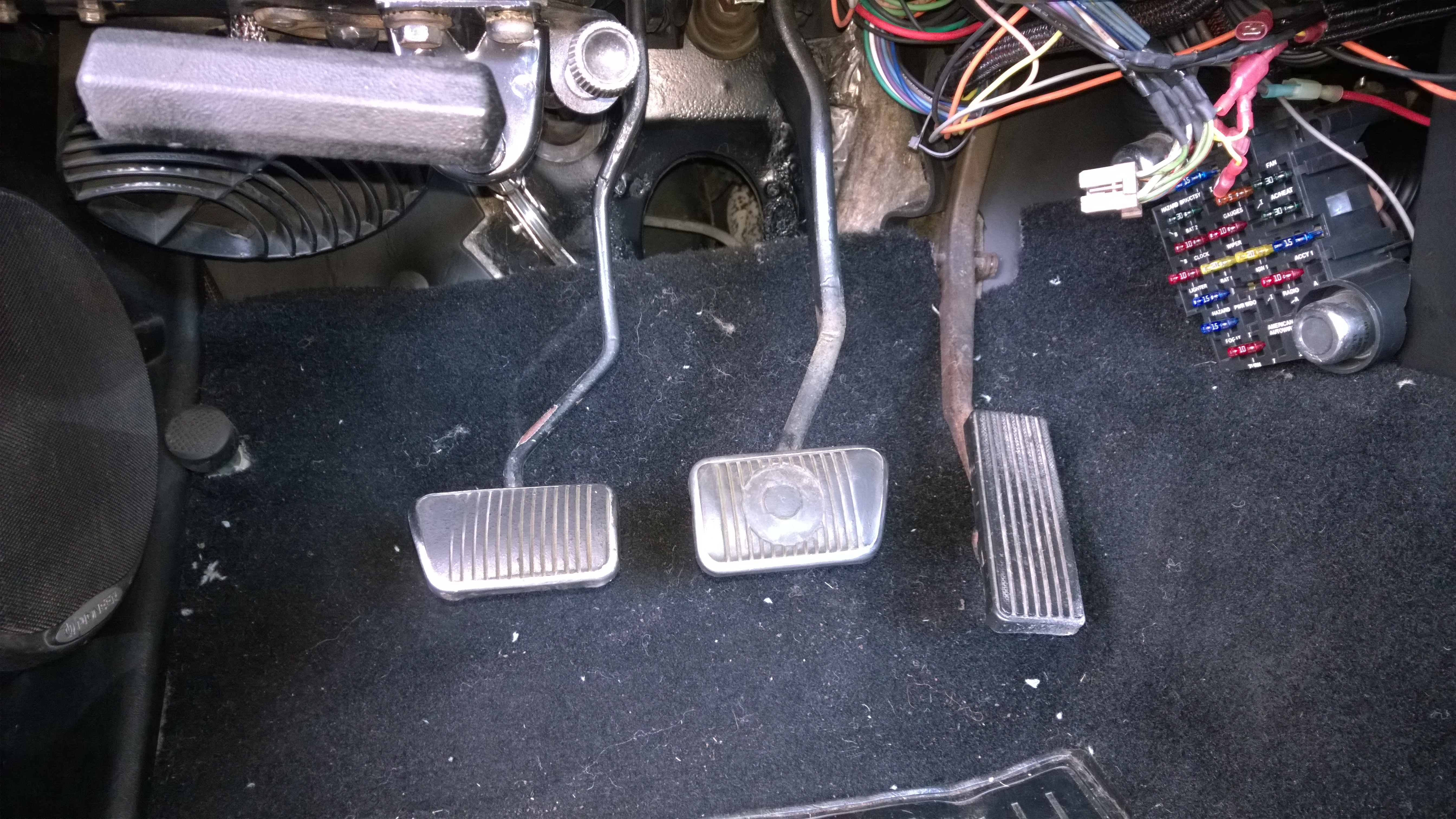 As you can see, the pedal was hanging oddly. After some research I thought this was worn out clutch pedal bushings and put in an order with Mustang Steve for one of his Ball Bearing Clutch Pedal Conversions. While I was waiting on the kit, I started tearing everything down and found more surprises.
