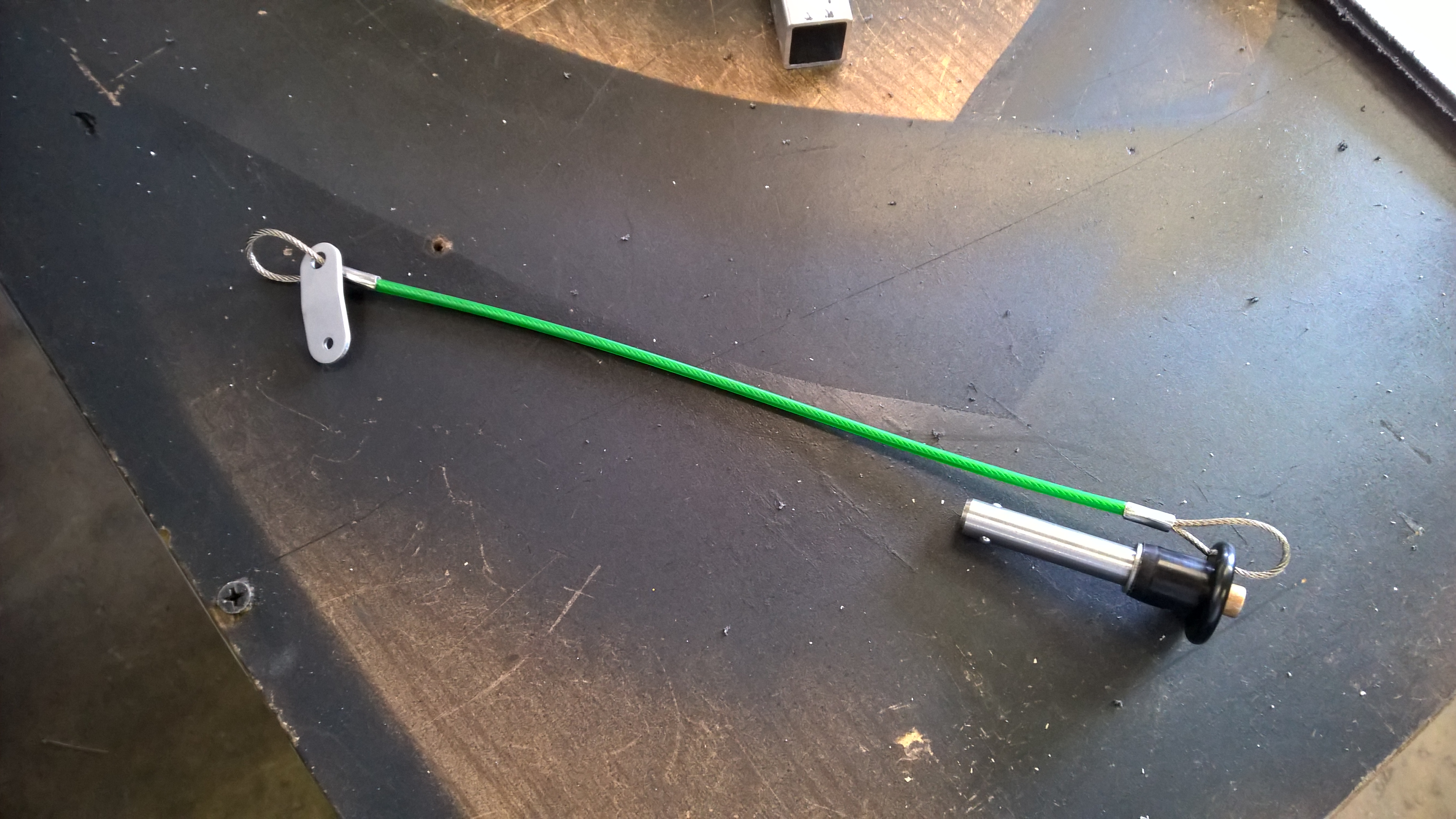 I struggled a long time trying to figure out a way to get the splitter on and off quickly. Whatever method we used had to be strong enough to hold it up, but we also didn’t want to have to spend a bunch of time bolting and unbolting it. I settled on these push-button quick release pins I got from McMasterCarr. They’re pricey ($25 each!), but seemed to be the solution I needed.